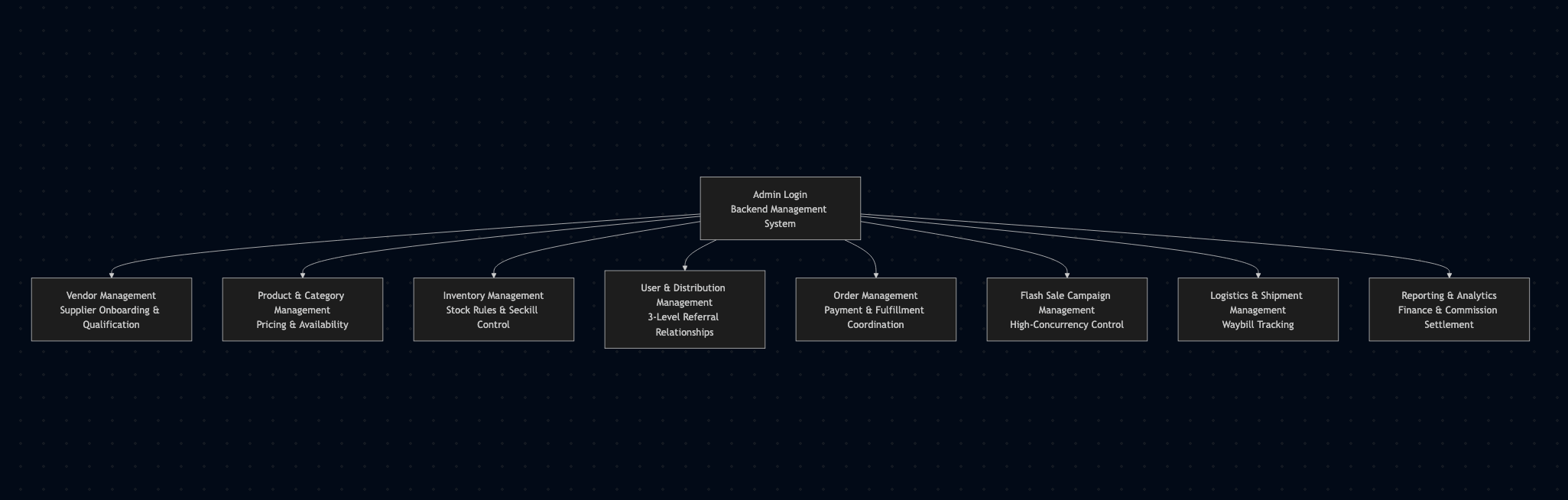 Administrators log into the backend management system to operate and control the entire business lifecycle.