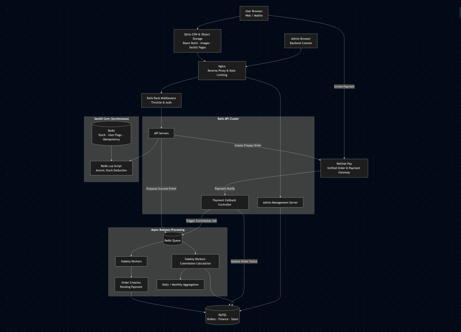 Each successful order triggered multi-level commission settlements, making the system both performance-critical and financially sensitive.