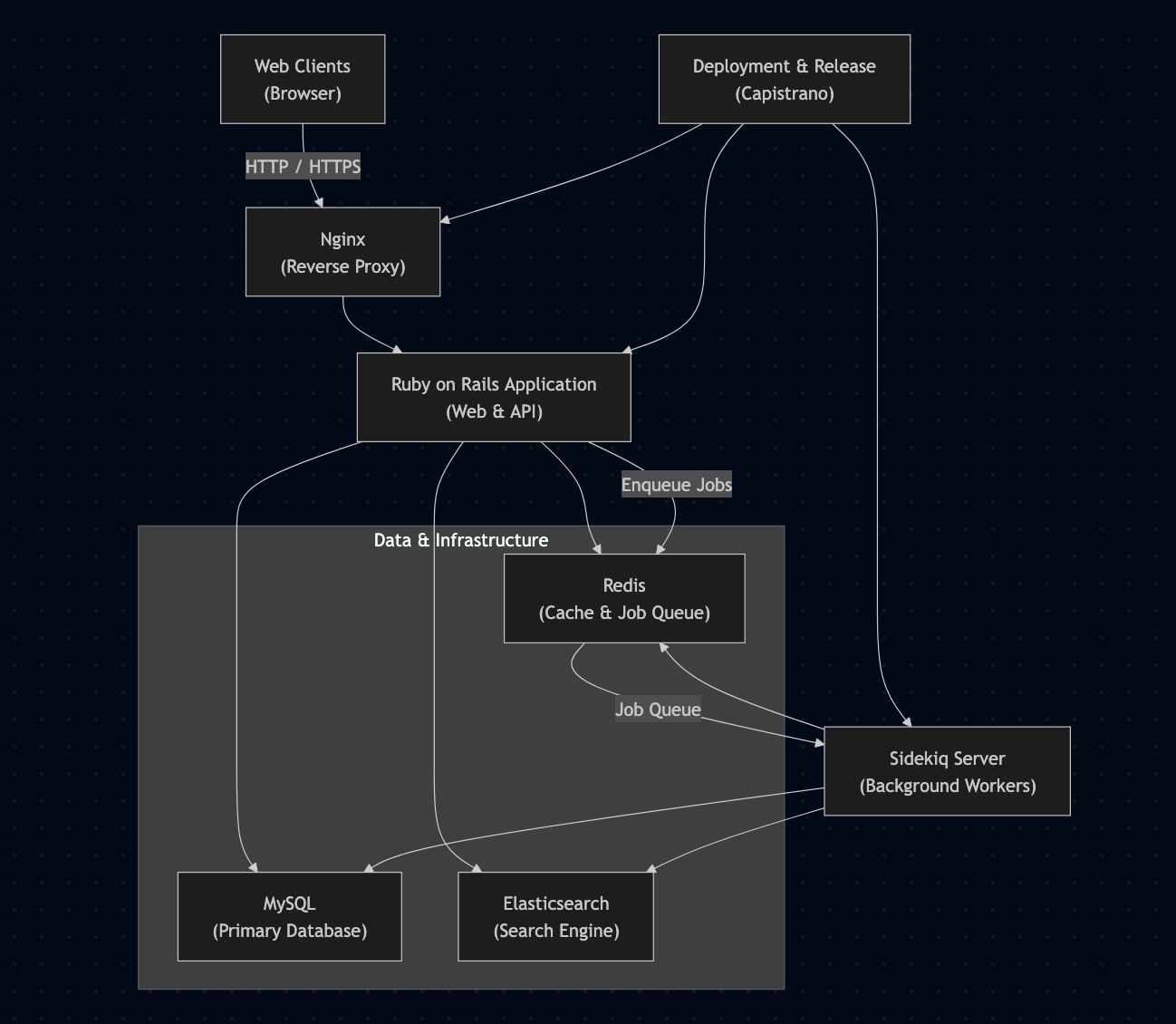 - A dedicated Sidekiq server handled all asynchronous tasks